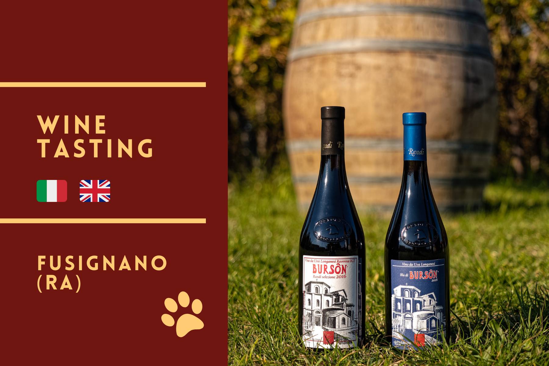 Die Verkostung, geleitet von Kennern der Reben, umfasst 3 oder 5 Weine, begleitet von einer kleinen Auswahl lokaler Köstlichkeiten. Im Mittelpunkt stehen Rebsorten wie Famoso, Malbo Gentile, Centesimino und vor allem Burson (Longanesi) – eine autochthone Sorte, die ausschließlich in der Provinz Ravenna angebaut wird.