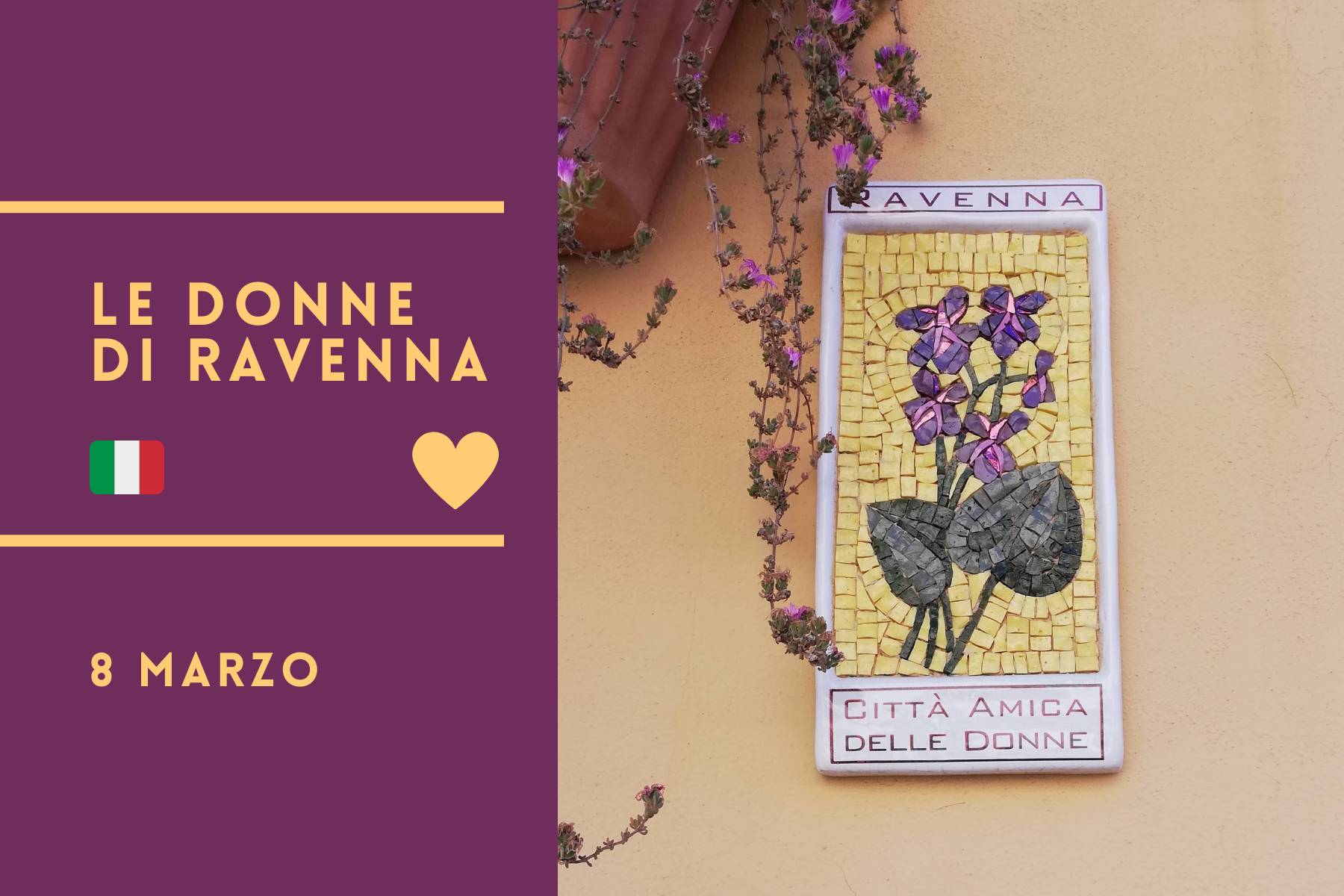 Camminando per il centro di Ravenna sicuramente avrete notato le mattonelle con fiori a mosaico poste all'esterno degli esercizi commerciali e delle abitazioni; simbolo della vicinanza della città alle donne vittime di violenza.